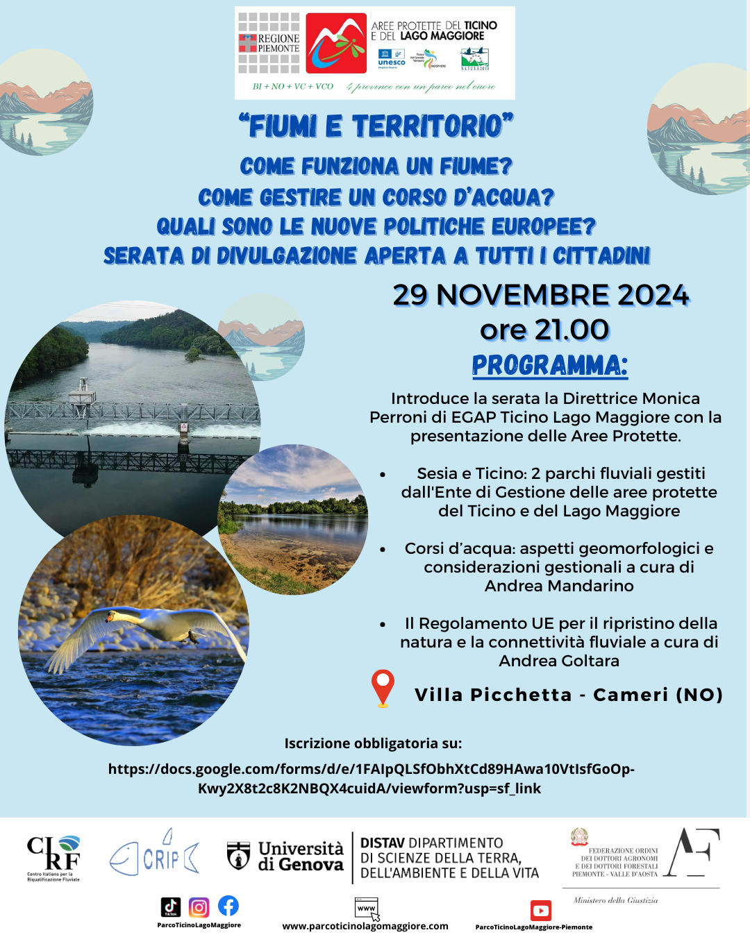 Venerdì 29 novembre 2024 dalle ore 21.00 si terrà presso Villa Picchetta a Cameri, una serata divulgativa che si interroga sul rapporto complesso tra fiumi e territorio percorrendo i momenti del passato, presente e futuro.