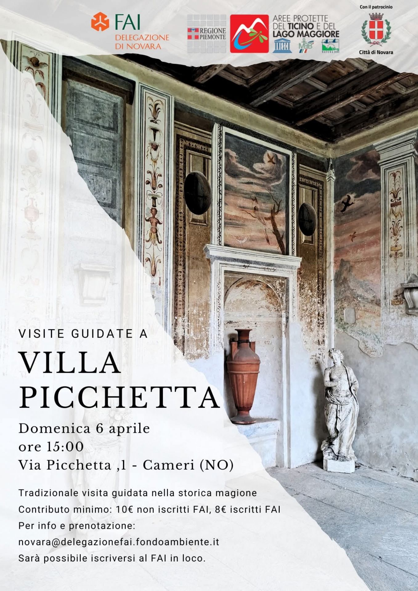 Il prossimo 6 Aprile, alle ore 15, la Delegazione FAI Novara organizza le tradizionali visite guidate a Villa Picchetta a Cameri.