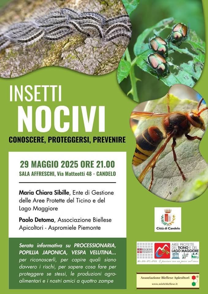 "Insetti nocivi. Conoscersi, proteggersi, prevenire", una serata informativa organizzata dal Comune di Candelo in collaborazione con l'Ente di Gestione delle Aree Protette del Ticino e del Lago Maggiore e l'Associazione Biellese Apicoltori.