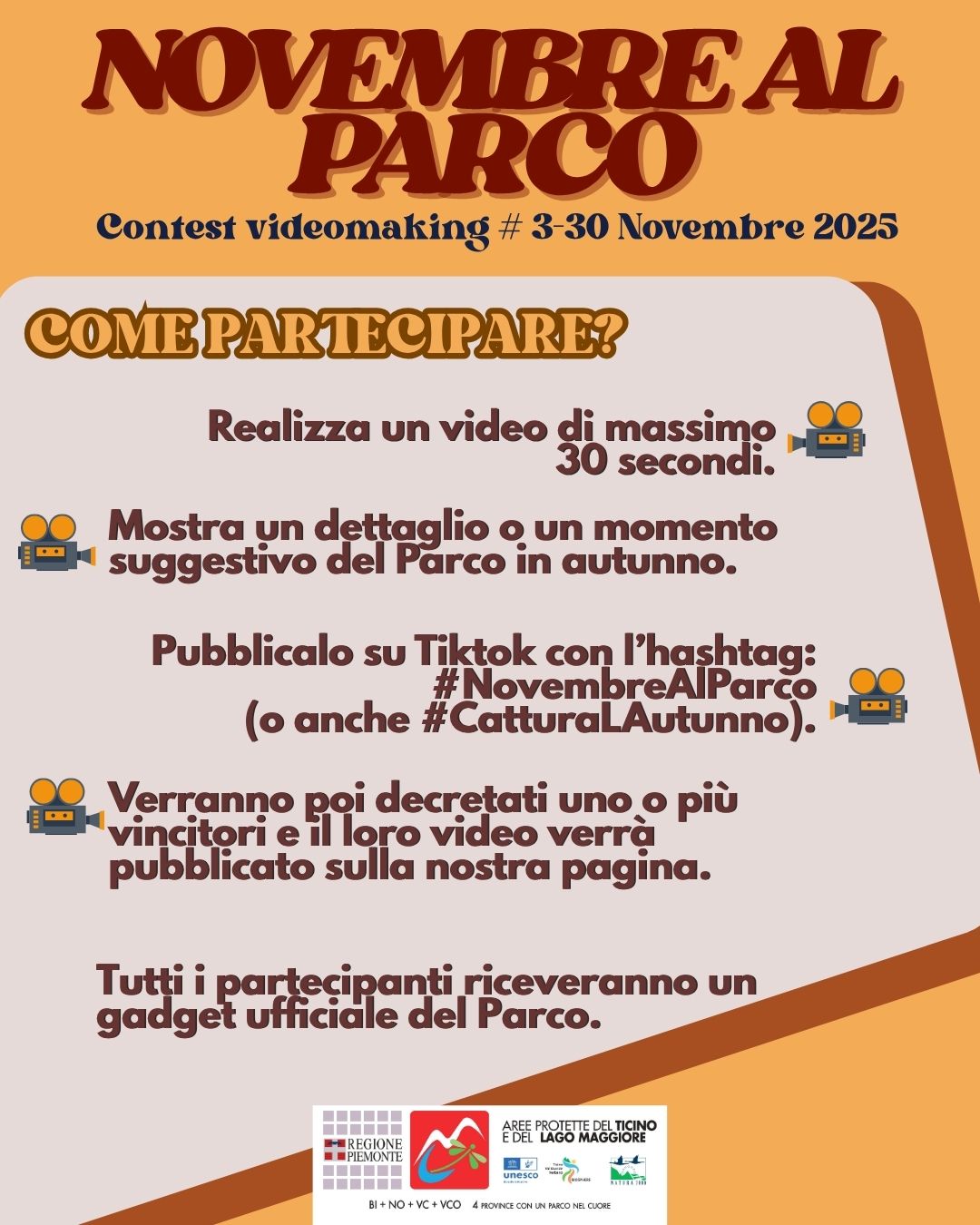 L’Ente di Gestione delle Aree Protette del Ticino e del Lago Maggiore lancia il contest TikTok “Novembre al Parco”, un’iniziativa autunnale di videomaking dedicata alla valorizzazione dei paesaggi e dei colori delle Aree Protette del Parco, aperto a tutti e con scadenza il 30 novembre 2025.