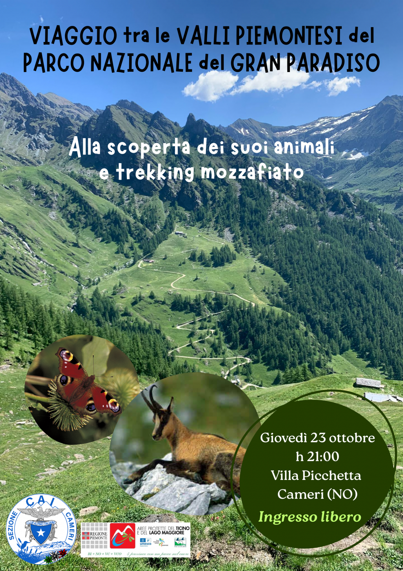 Giovedì 23 ottobre, alle ore 21 presso Villa Picchetta, il CAI Sezione Cameri organizza una serata dedicata al Parco Nazionale Gran Paradiso, alla scoperta dei suoi animali e di trekking mozzafiato.