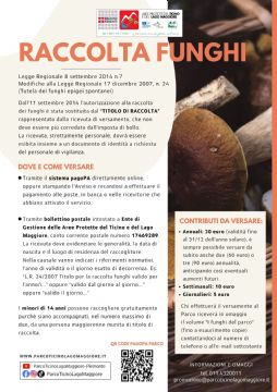 Dall’11 settembre 2014 l’autorizzazione alla raccolta dei funghi è stata sostituita dal “titolo di raccolta” rappresentato dalla ricevuta di versamento, che non deve essere più corredato dall’imposta di bollo.